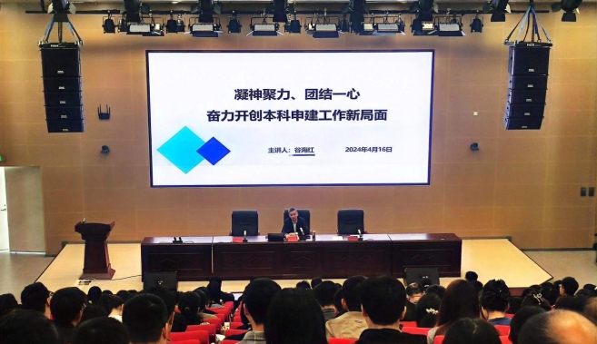 院长谷海红开展题为“凝心聚力,团结一心,奋力开创应用型本科建设新局面”专题讲座,300余名教职工参加培训。