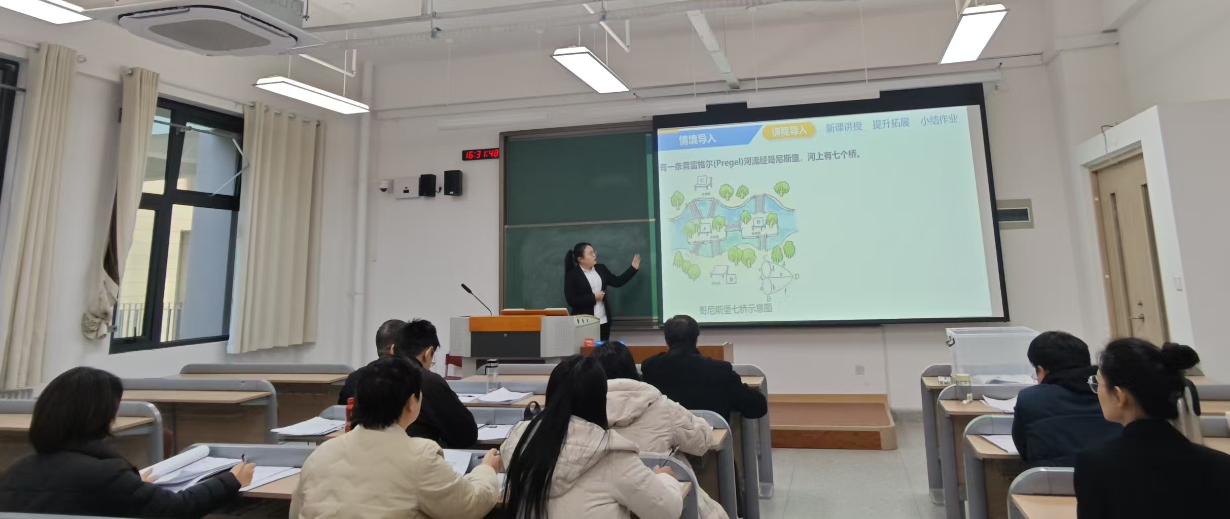 比赛中,参赛教师精神饱满、各展其能。新工科组通过实物模型、工程案例解析,将抽象知识直观化;文科组依托案例教学,融地方文化与课程思政于一体;产教融合组引入企业项目,衔接教学与岗位需求;外语组借情景模拟与跨文化案例,实现语言教学与应用场景深度融合;实验组聚焦实践环节创新,引导学生从操作中领悟原理;体育组注重身心融合,在技能训练中渗透健康理念与团队精神。教师们巧妙设计互动环节,灵活运用智慧教学工具,充分展现出扎实的教学功底与突出的创新能力,获得了评审组的一致好评。