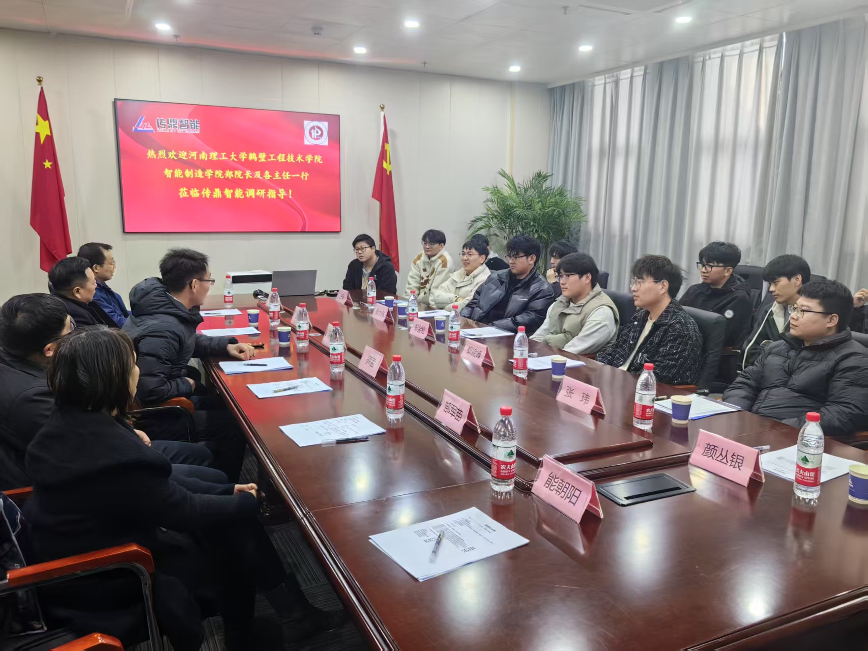 河南传鼎网络科技有限公司在人工智能视觉技术研发、应用等方面拥有较强的技术积累和实践经验。探访人员参观了公司的软硬件设施、实验室及餐厅与学生宿舍。在与企业座谈中,企业对动漫疯