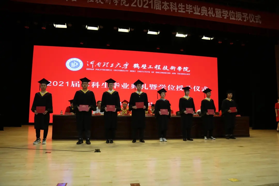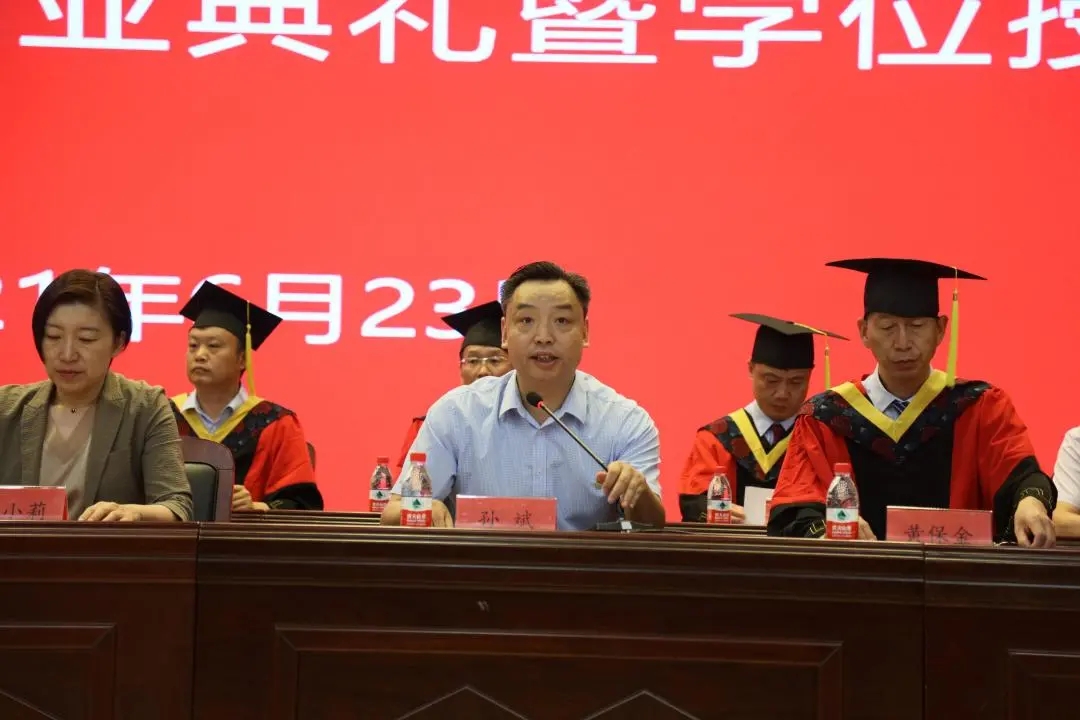 关于颁发2021届本科生毕业证书、授予本科毕业生学士学位的决定。典礼进行了隆重的颁发证书仪式,主席台就座的领导为毕业生代表拨正流苏,颁发证书。教师代表康智慧老师、毕业生代表王晨雨同学作了精彩发言。