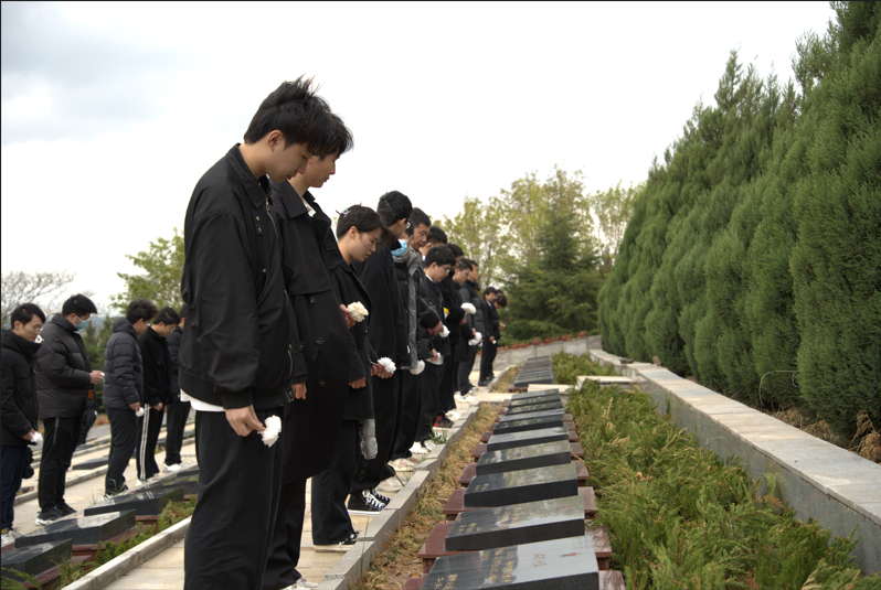 电子2201班、电子本2201班、机制2002班同学及青马班代表前往烈士陵园对无数先烈进行祭奠。到达烈士陵园,同学们整齐列队,面向革命烈士纪念碑进行默哀。辅导员孙勇主任和张艳杰老师依次进行了讲话,之后,由领诵同学带领大家进行宣誓,表达对先烈的追思与敬仰。最后,参加人员依次上前,为烈士们敬献白花,表达对烈士们的崇高敬意。