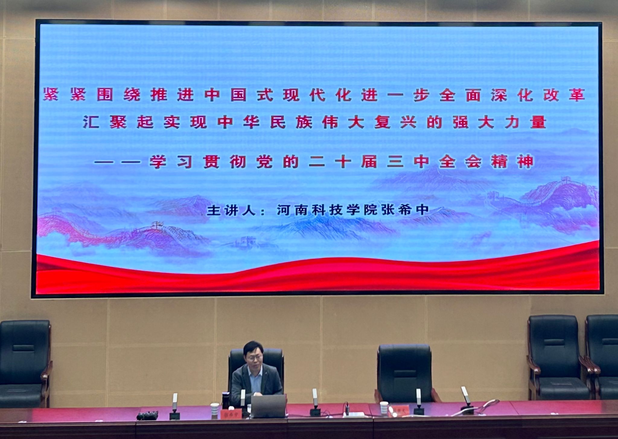 张希中从深刻认识党的二十届三中全会的重大意义和鲜明主题、深入学习领会习近平总书记关于全面深化改革的重要论述、准确理解进一步全面深化改革的总体思路与系统部署、将思想和行动统一到全会精神的贯彻落实上来四个方面,系统解读了二十届三中全会精神,带来了一场生动形象的思想盛宴。