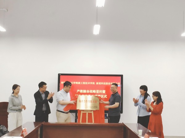 与新道科技股份有限公司产教融合战略签约暨校外实践基地揭牌仪式在崇德楼103室举行。河南信息科技动漫疯